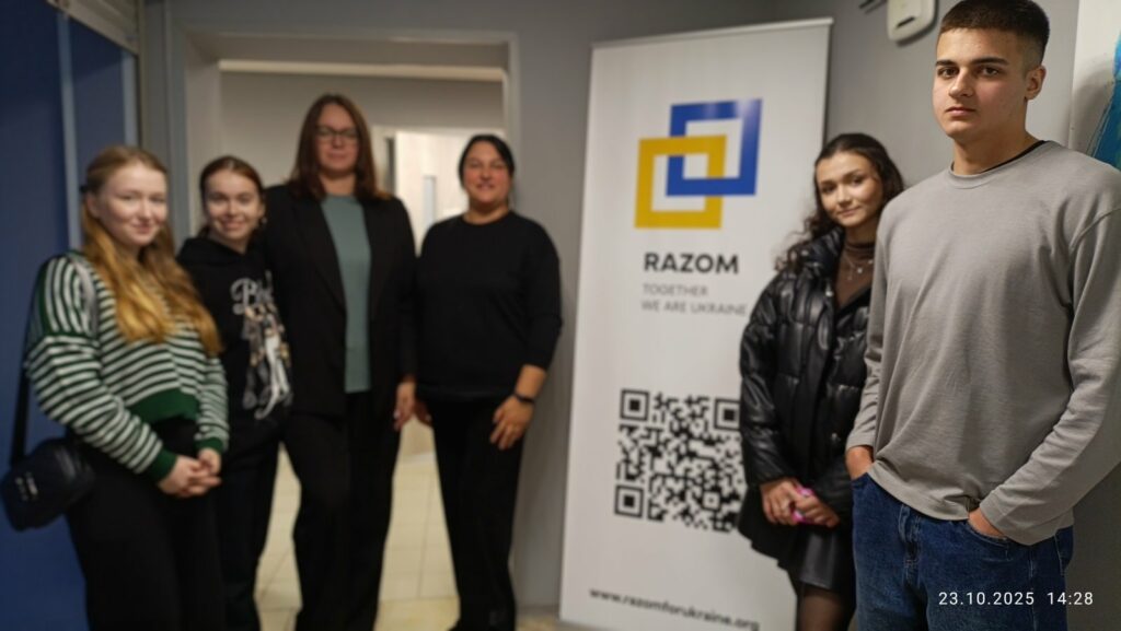 Перша локація – простір психологічної підтримки «RAZOM з тобою» – це ініціатива Благодійного фонду «Разом для України», спрямована на безкоштовну кваліфіковану психологічну допомогу населенню, що постраждало від війни. Проєкт має за мету створювати і впроваджувати ефективну систему підтримки ментального здоров’я українців у воєнний та післявоєнний час та поєднує фахову психологічну допомогу для дорослих, психоедукаційні тренінги для спеціалістів, які працюють в системі «людина-людина», освітні вебінари та групову підтримку.