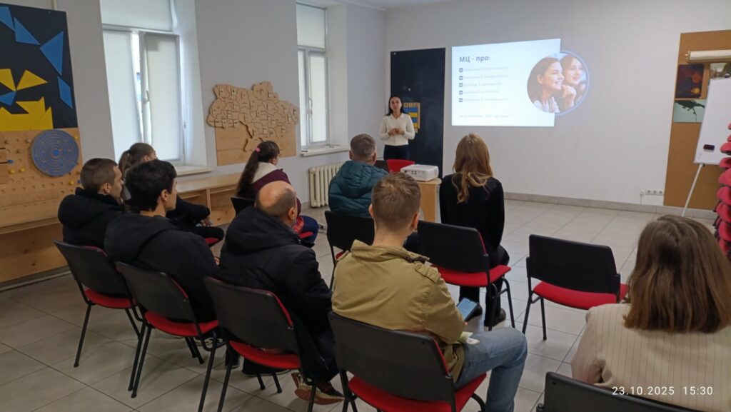 Третє виїзне заняття пройшло у Комунальній установі «Молодіжний центр». Ознайомче заняття для здобувачів провела Добровольська Наталія – керівник Центру. Здобувачами освіти було досліджено механізми створення безпечного та інклюзивного простору для молоді. Це підтвердило, що компетенції фахівця із соціальної роботи включають не лише кризову інтервенцію, але й соціальну профілактику та розвиток молодіжного потенціалу, що є стратегічною умовою довгострокової стійкості громади.
