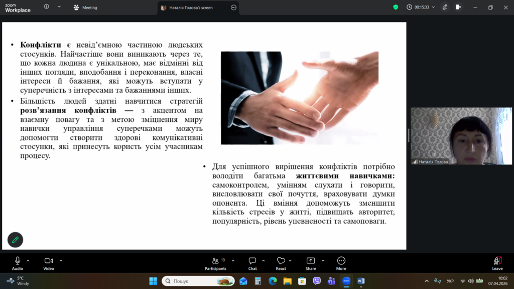 Бінарна лекція на тему «Конфлікти в освітньому середовищі та шляхи їх вирішення»