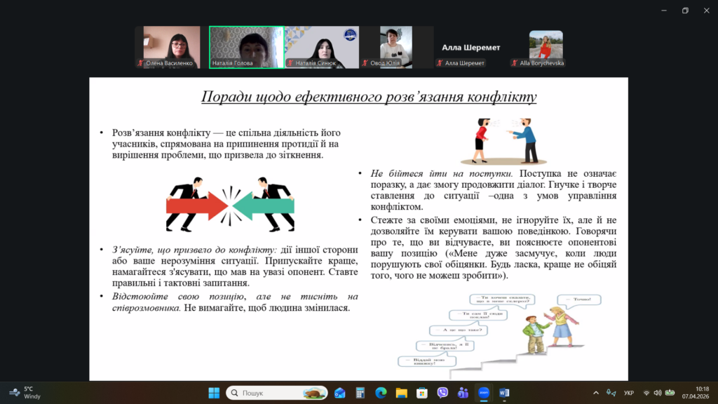 Завдяки участі у бінарній лекції викладачі і здобувачі мали можливість обговорити те, як правильно реагувати на конфліктні ситуації та створювати дружню, безпечну атмосферу в освітньому середовищі.