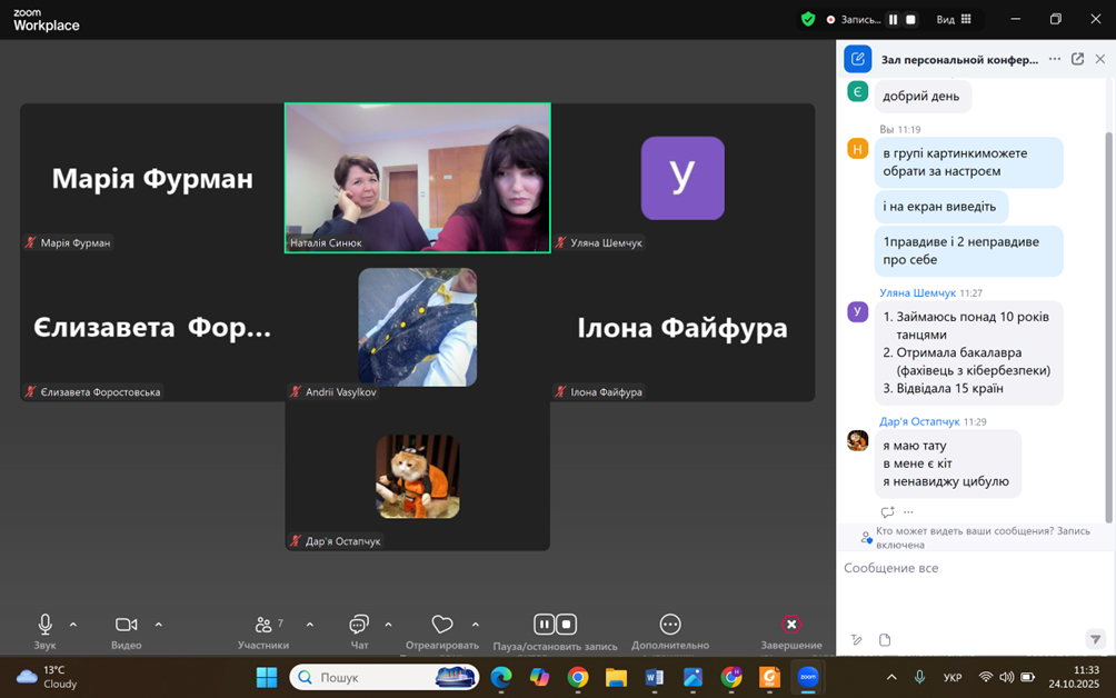24 жовтня 2025 року для здобувачів першого (бакалаврського) та другого (магістерського) рівнів вищої освіти в межах вивчення дисциплін «Технології соціально-педагогічної діяльності та педагогічний коучинг», «Теорія і моделі соціальної роботи» та «Управління соціальними організаціями, проєктами та послугами» (викладачі – Юлія Овод та Наталія Синюк) гостьове практичне заняття провели волонтери Хмельницької міськрайонної організації Товариства Червоного Хреста України Софія Капелюшок та Марина Чорна.