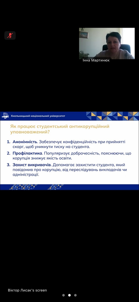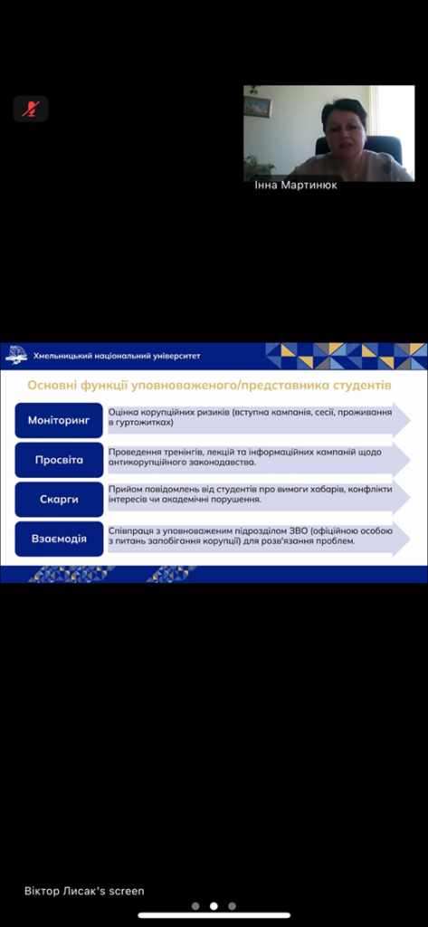 • 26 березня студенти фокус-груп кафедри взяли участь у вебінарі «Антикорупційна політика ХНУ», який провела уповноважена особа з питань антикорупційного законодавства Інна Мартинюк.