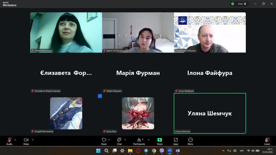 • 31 березня відбулася зустріч членів студентського наукового гуртка «Інноваційні наукові дослідження в соціальній сфері» (керівник – канд. пед. наук, доцент Олена Василенко) з фахівцем відділу забезпечення якості вищої освіти ХНУ Володимиром Мильком. На цій зустрічі були обговорені етичні питання використання штучного інтелекту у науково-дослідній роботі здобувачів вищої освіти.