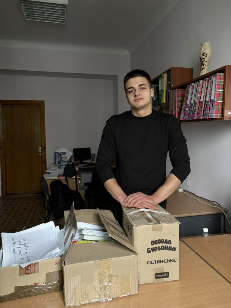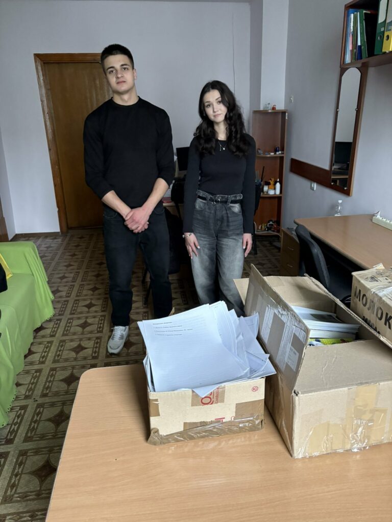 Представники соціального відділу Студентської ради гуманітарно-педагогічного факультету, здобувачі кафедри Аліна Устінова та Олександр Скрипник передали естафету участі в благодійній акції «Здай папір – підтримай воїнів» колективу кафедри екології та біологічної освіти гуманітарно-педагогічного факультету.