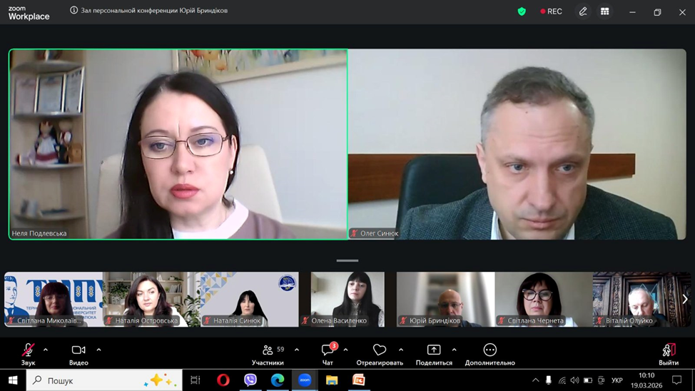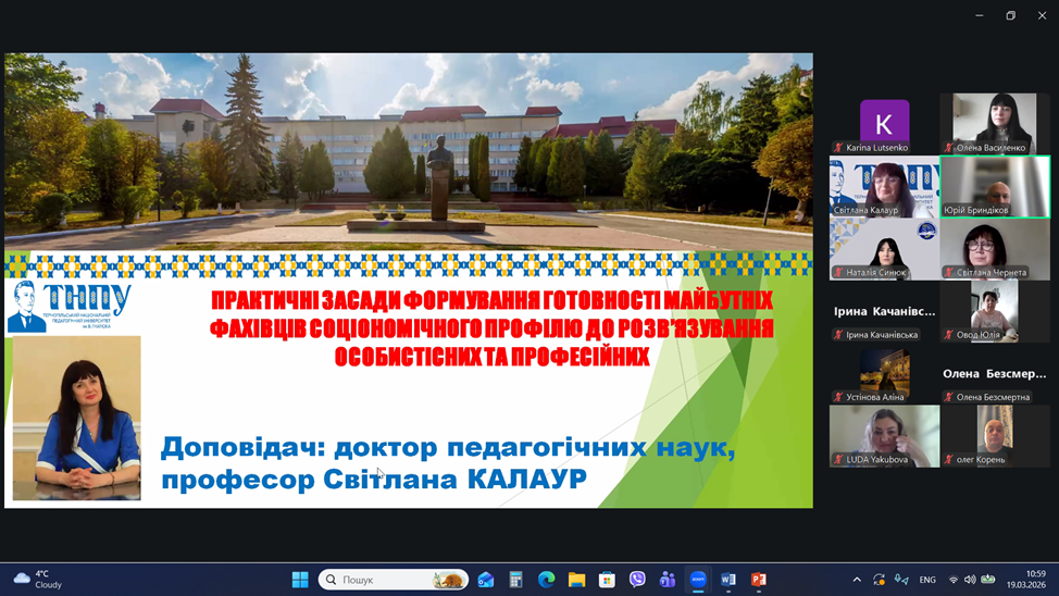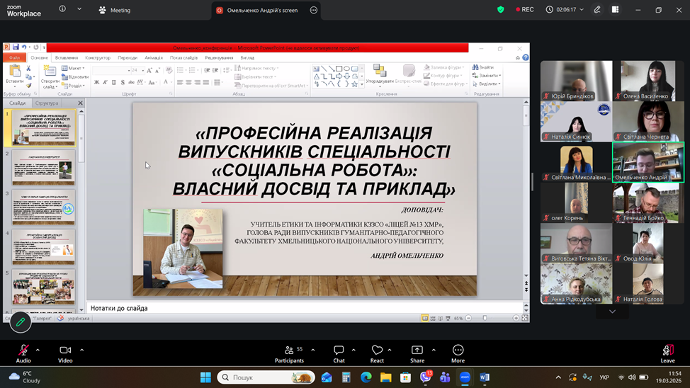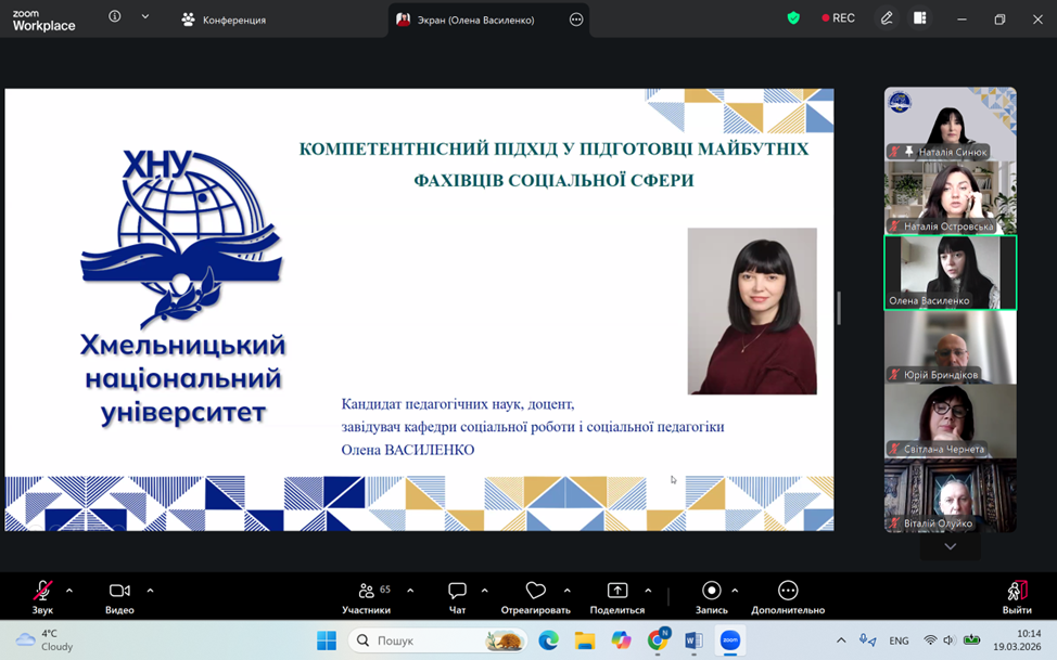 19-20 березня 2026 року на кафедрі соціальної роботи і соціальної педагогіки відбувалась традиційна V Всеукраїнська науково-практична онлайн-конференція з міжнародною участю«Професійна підготовка фахівців соціальної сфери: надбання, проблеми, перспективи». Конференція складалася з двох частин: пленарного засідання та практичної панелі, що включала майстер-класи та семінари-тренінги.