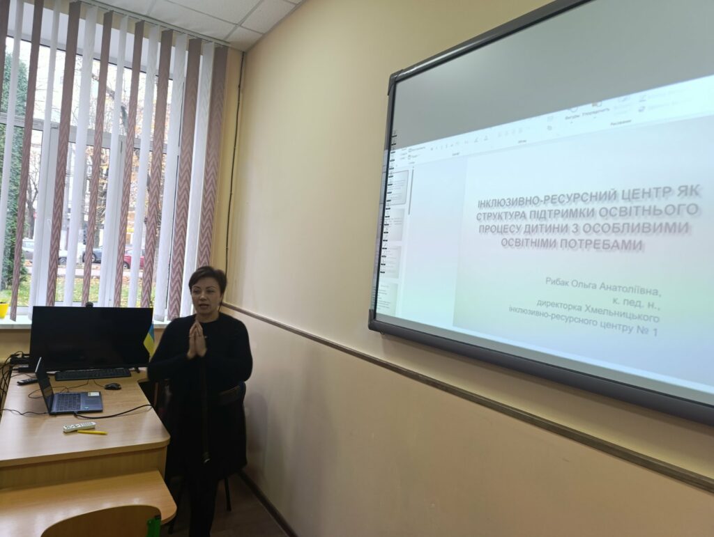 Виїзне заняття в межах вивчення здобувачами кафедри навчальних дисциплін «Вступ до фаху» та «Інноваційні методи, технології та практики в системі соціальної роботи» (викладач – проф. Анна Рідкодубська) було проведено в Інклюзивно-ресурсному центрі №1 міста Хмельницького.
