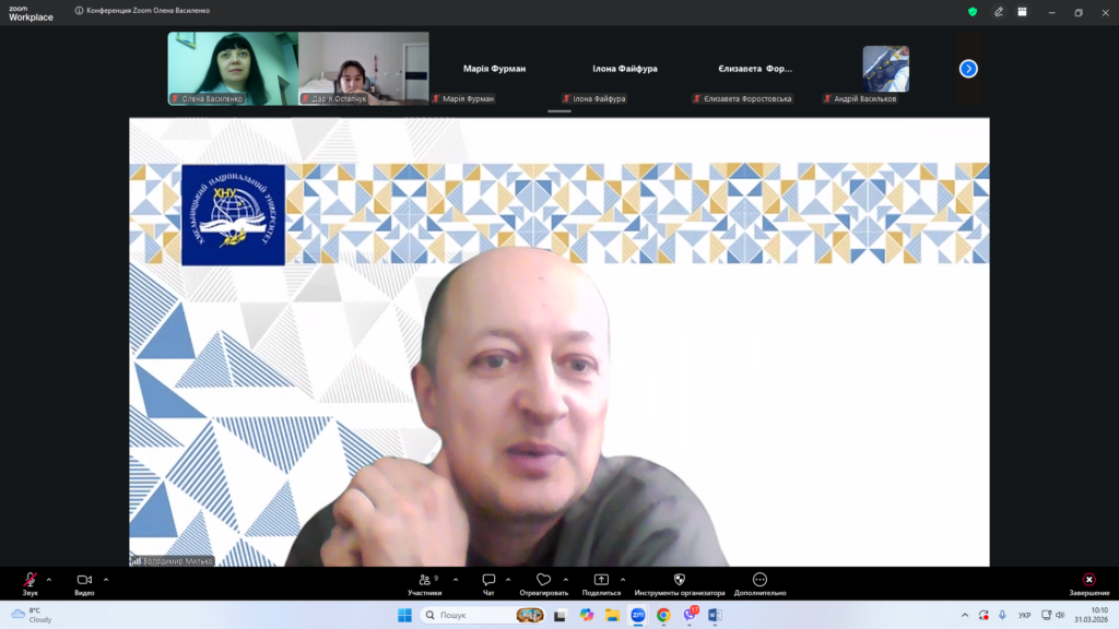31 березня 2026 року в межах діяльності студентського наукового гуртка «Інноваційні наукові дослідження в соціальній сфері» (керівник – канд. пед. наук, доцент Олена Василенко) відбулася зустріч з канд. техн. наук, доцентом, фахівцем відділу забезпечення якості вищої освіти та відповідальним за адміністрування програмно-обчислювального комплексу Strike Plagiarism у Хмельницькому національному університеті Володимиром Мильком.